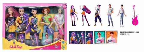1比1 K-POP 猎魔男团真人版 11.5寸11关节实身猎魔男团VS猎魔女团 5人混装带 吉他带卡片一张
