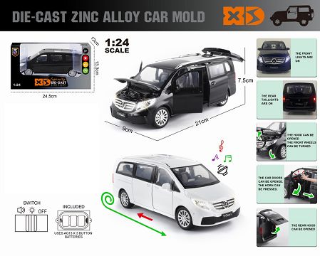 英文1:24压铸锌合金灯光音效奔驰V260L车模