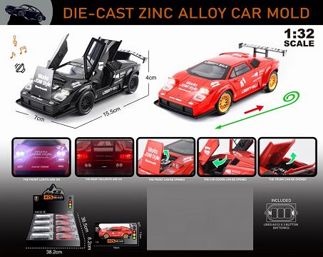 英文1:32压铸锌合金灯光音效兰博基尼康塔什车模 8只/展示盒