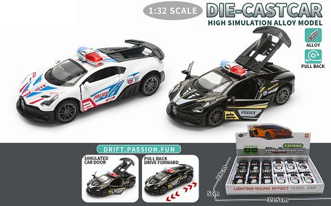 1:32合金车模-三开门布加迪警车带回力(12只/展示盒 )