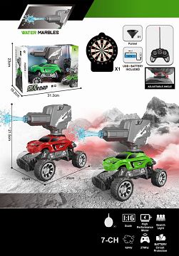 1:16 27MHz遥控7通4轮攀爬车带遥控发射水枪炮台,带喷雾功能,一键演示,带1个漏斗,带探照灯,带喷雾器注水瓶 (包电)