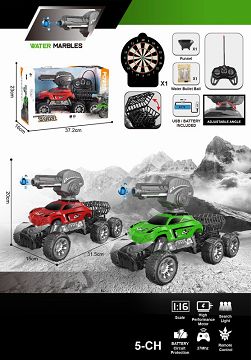 1:16 27MHz遥控5通6轮攀爬车带遥控发射水弹炮台,带1包干水弹1装弹漏斗,带探照灯,带喷雾器注水瓶 (包电)