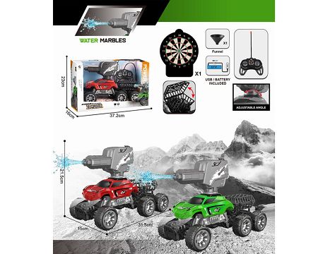 1:16 27MHz遥控5通6轮攀爬车带遥控发射水枪炮台,带1个漏斗,带探照灯,带喷雾器注水瓶 (包电)