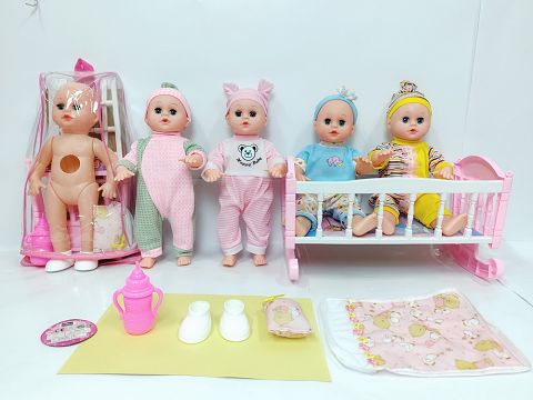 14寸吹气直脚喝水撒尿男娃(带英文IC,一双鞋子,奶瓶,塑料摇床和枕头被)