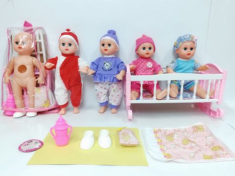 14寸吹气直脚喝水撒尿男娃(带英文IC,一双鞋子,奶瓶,塑料摇床和枕头被)