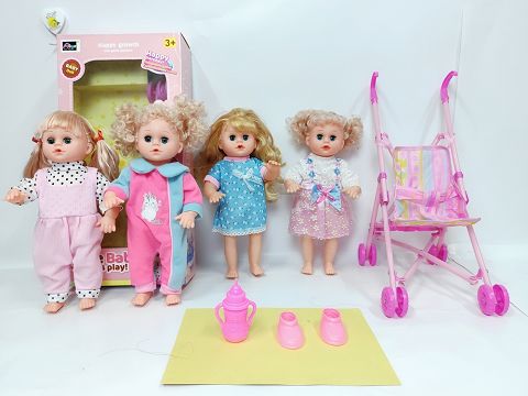 14寸吹气直脚喝水撒尿女娃(带英文IC,塑料推车,奶瓶,一双鞋子)