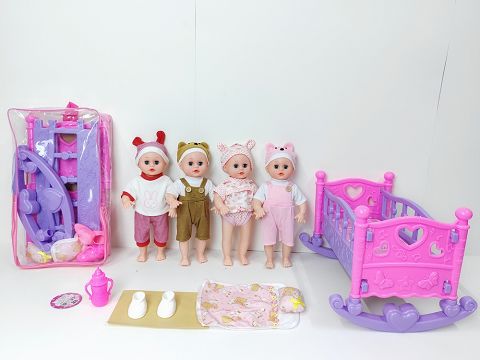 14寸直脚喝水撒尿娃娃带英文IC(配鞋子,奶瓶,塑料摇床,枕头被)