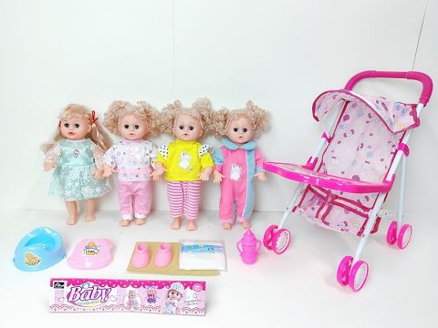 14寸直脚喝水撒尿娃娃带英文IC(配铁推车,便盆,围脖,鞋子,尿裤,奶瓶)