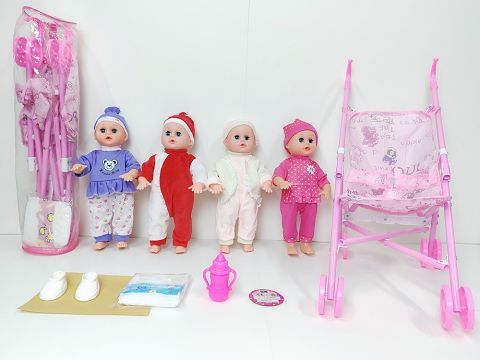14寸直脚喝水撒尿娃娃带英文IC(配鞋子,尿裤,奶瓶,塑料推车)