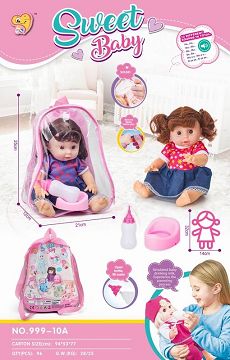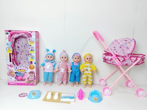 14寸直脚喝水撒尿娃娃带英文IC(配铁推车,围脖,鞋子,尿布,奶瓶,便盆)