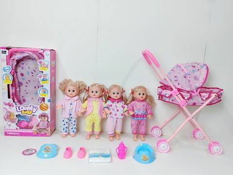 14寸直脚喝水撒尿娃娃带英文IC(配铁推车,围脖,鞋子,尿布,奶瓶,便盆)