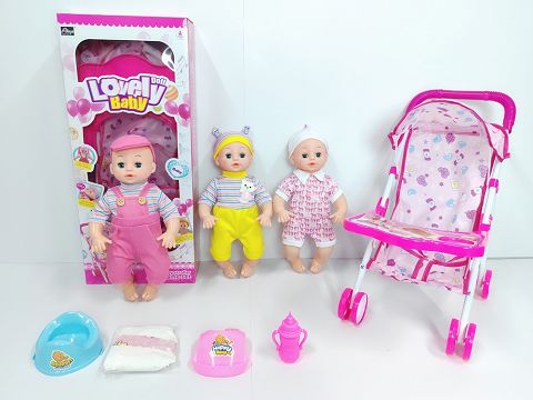 16寸喝水撒尿娃娃带英文IC (配铁推车,便盆,尿裤,围脖,奶瓶)
