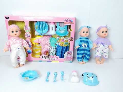 14寸喝水撒尿娃娃带英文IC(配4套随机搭配衣服,餐具,奶瓶,塑料围脖)