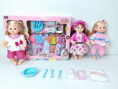 16寸喝水撒尿娃娃带英文IC (配5套随机衣服,餐具,奶瓶,纸巾盒,尿裤)
