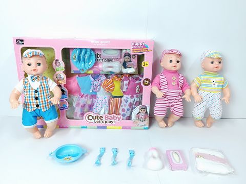 16寸喝水撒尿娃娃带英文IC (配5套随机衣服,餐具,奶瓶,纸巾盒,尿裤)