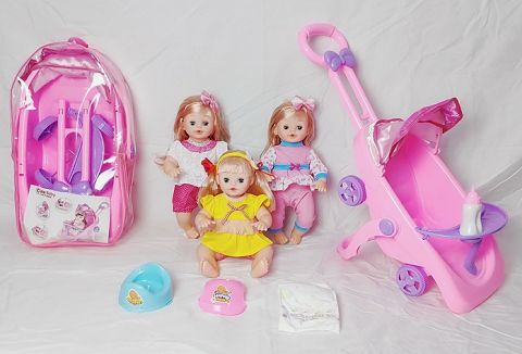 16寸喝水撒尿娃娃带英文IC(配便盆,围脖,尿裤,奶瓶,多功能推车)