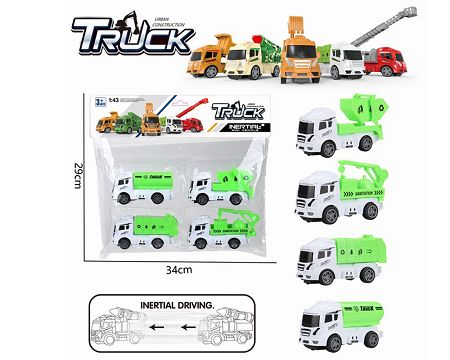 超透PVC卡头袋惯性环卫斗车+翻斗车+洒水车+吊车四只装