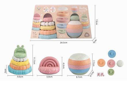 麦秆料软胶青蛙彩虹头圆球叠叠乐