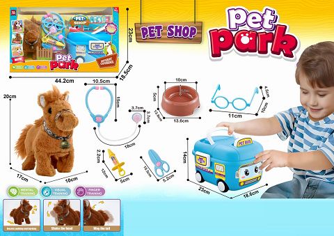 毛绒电动马+巴士车 大开窗盒医具套装