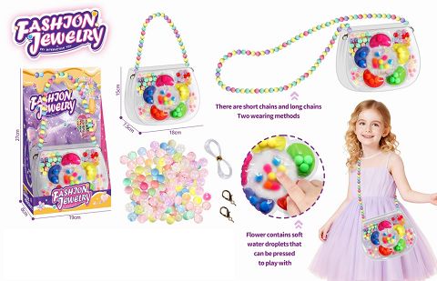 女孩过家家串珠珠子饰品包 手工袋 创意按压解压 颜色分类捏捏乐 3合1斜挎包