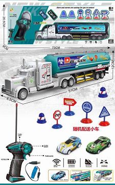 REMOTE-CONTROLLED AMERICAN-STYLE LARGE OIL TANK TRACTOR +2 GOLD AND GOLD REBOUND VEHICLES +6 ROAD SIGNS