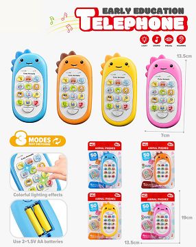EARLY CHILDHOOD EAR BITING PHONE DINOSAUR (PORTUGUESE, SPANISH, ENGLISH, RUSSIAN, INDONESIAN) 4 COLORS